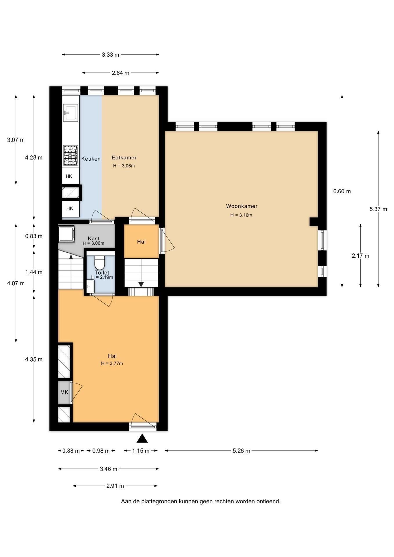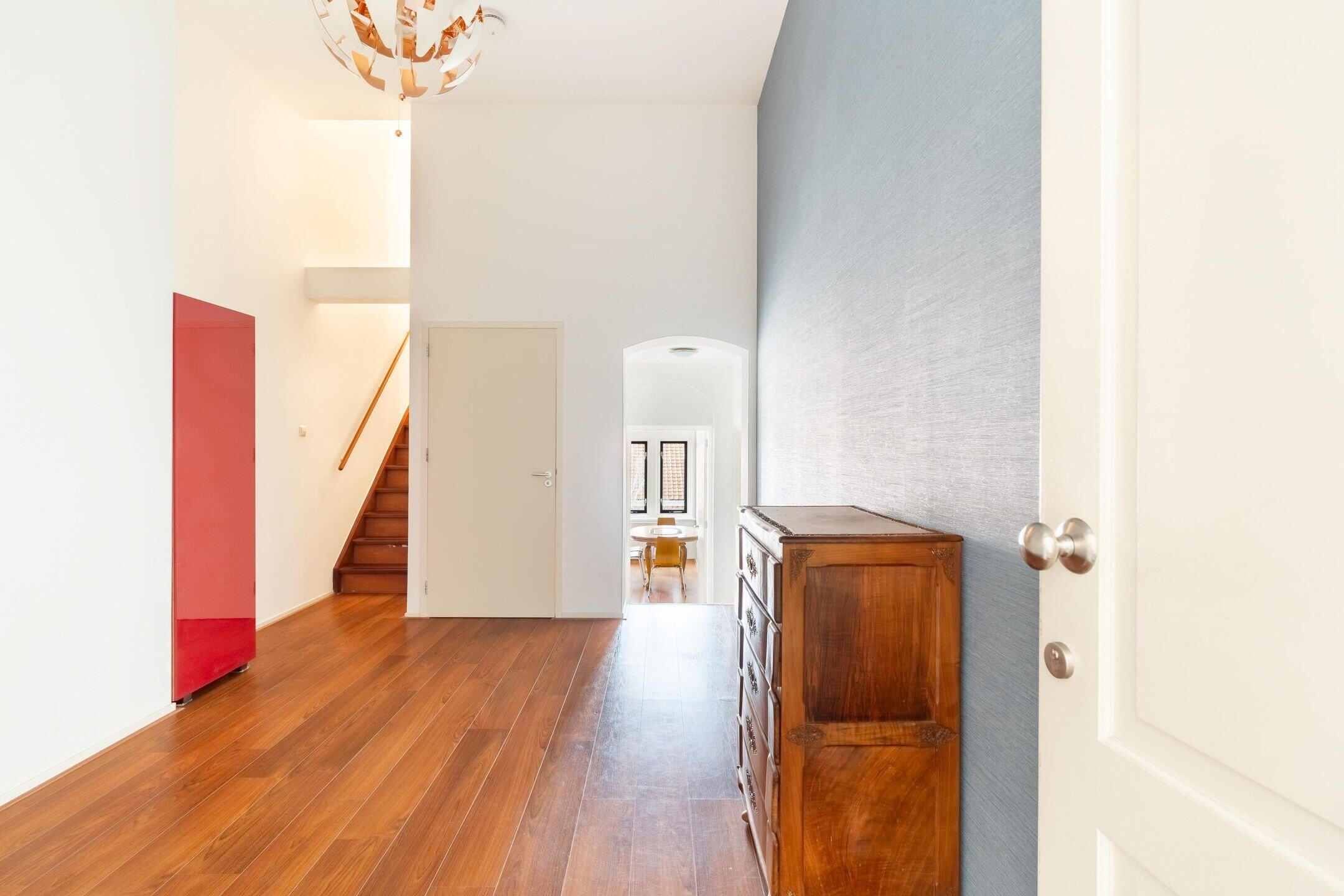 U komt binnen in een zeer ruime hal met apart toilet. Aan de rechterzijde is een kleine trap omlaag naar de woonkamer en de keuken.