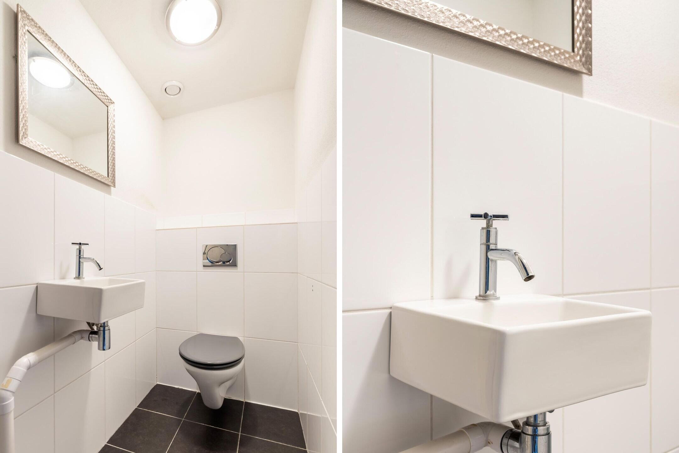 Naast de keuken bevindt zich een aparte wasruimte voor een wasmachine en een droger.