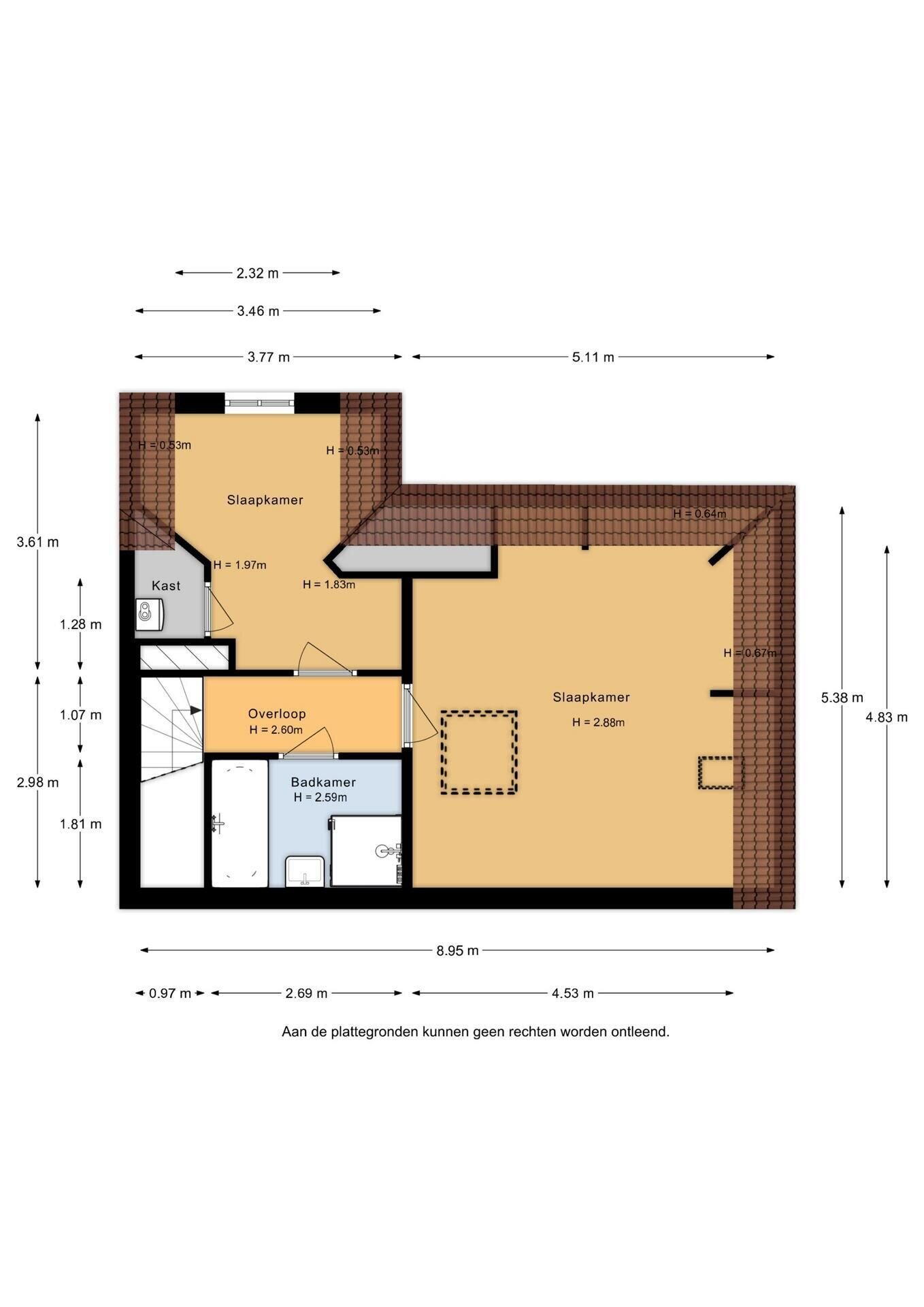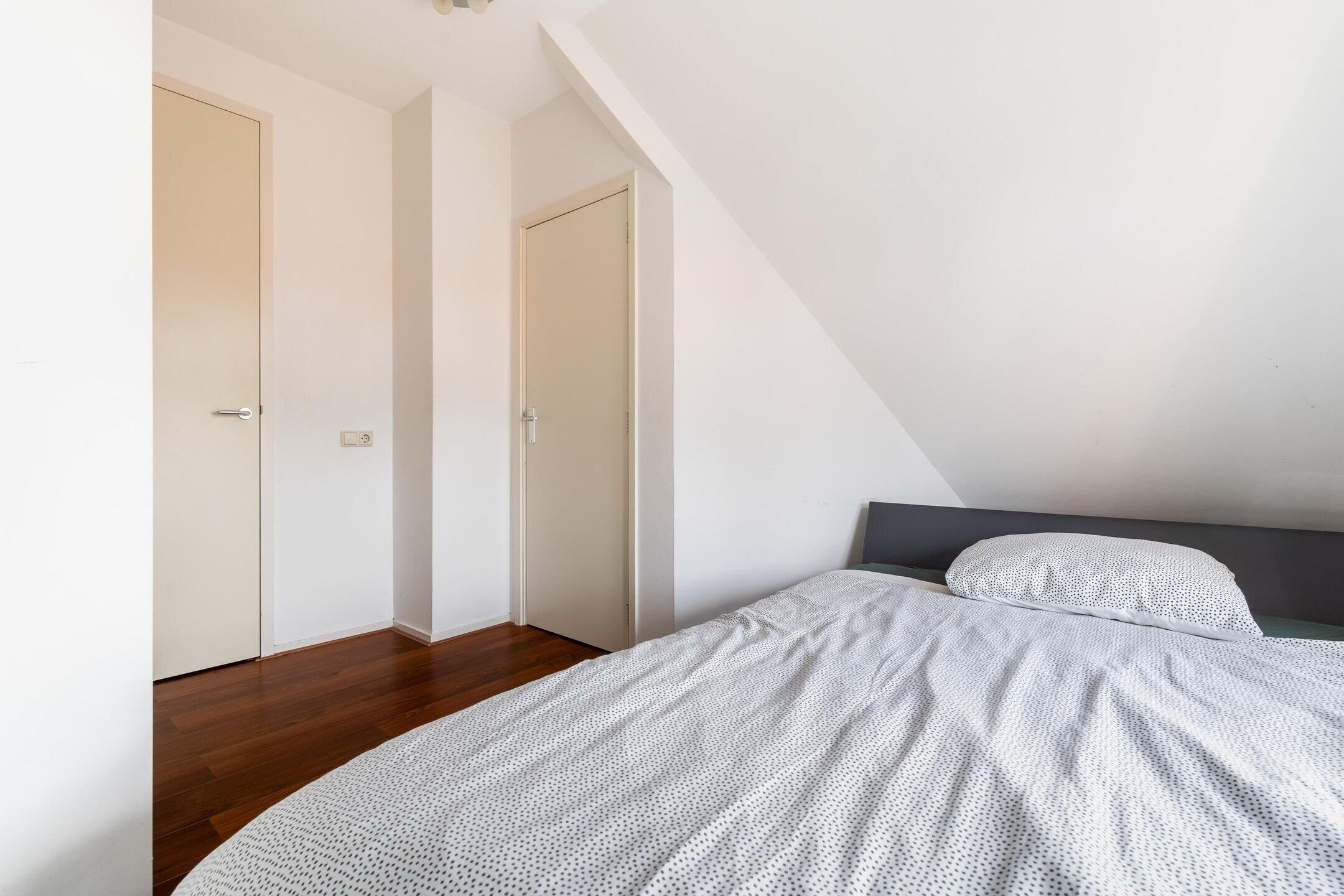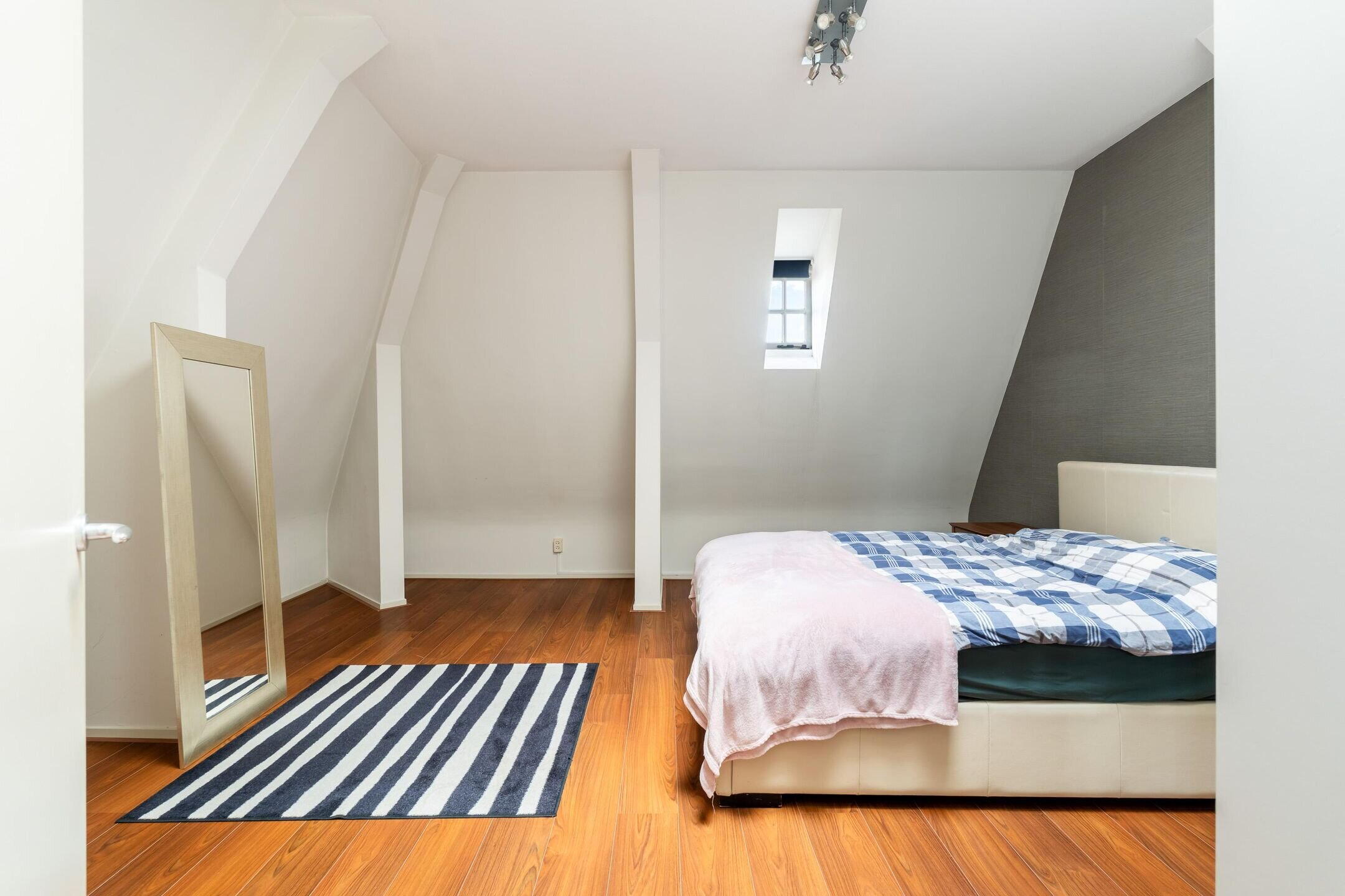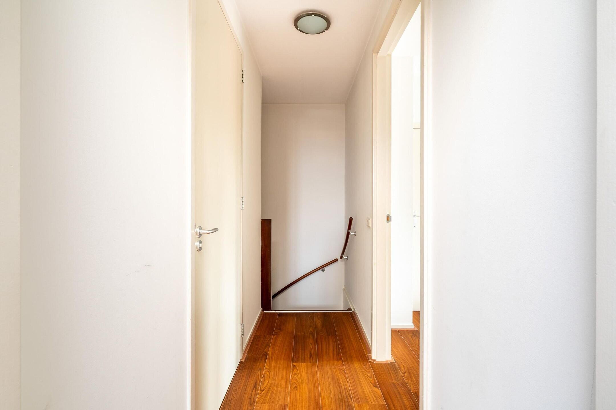 Wanneer u vanuit de hal met de trap omhoog gaat, komt u uit op de verdieping met twee slaapkamers en een badkamer. De grootste slaapkamer is voorzien van een lichtkoepel die afgesloten kan worden voor het slapen. In de kleine slaapkamer is een deur naar de CV-ruimte waar de HR 107 ketel en de mechanische ventilatie hangt.
